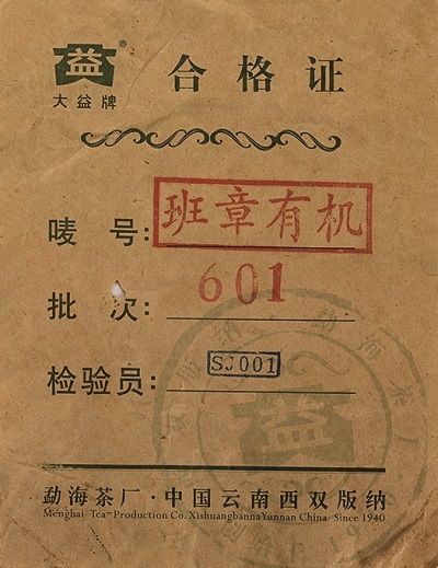 2006年 班章有機青餅(601批次)是勐海茶廠改制後最後一款班章,用料品質高,被許多專業茶友認為是勐海茶廠改制後最高水準的茶。