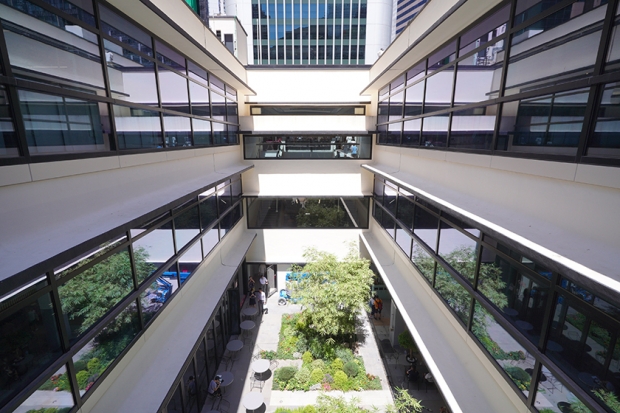 因為並非事事作商業考慮,設計上,他們也以Urban Oasis為設計概念,做了一些完全違反香港慣例的設計,例如在人流最黃金的位置放置大量植物,像個小公園。二樓24小時開放的通道,天花掛有400顆植物,設有自動灑水系統。除了地面有公共空間座位,一樓窗邊,也有座位讓人閒坐、看書、充電。